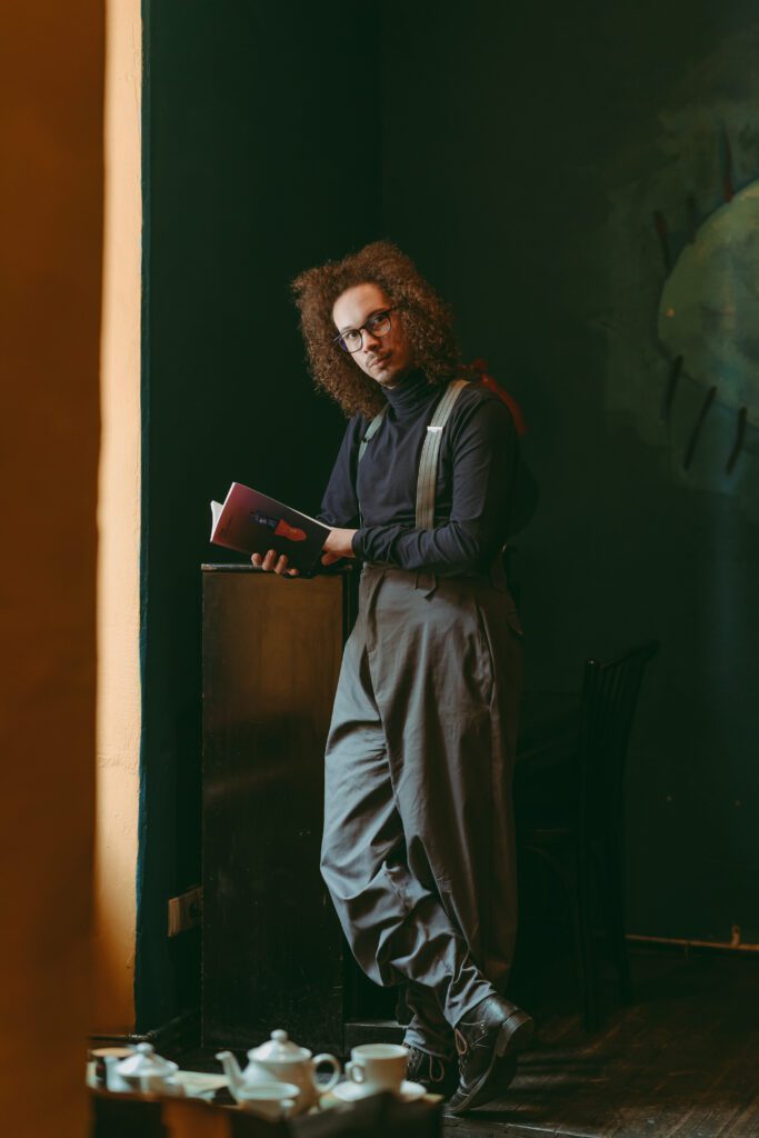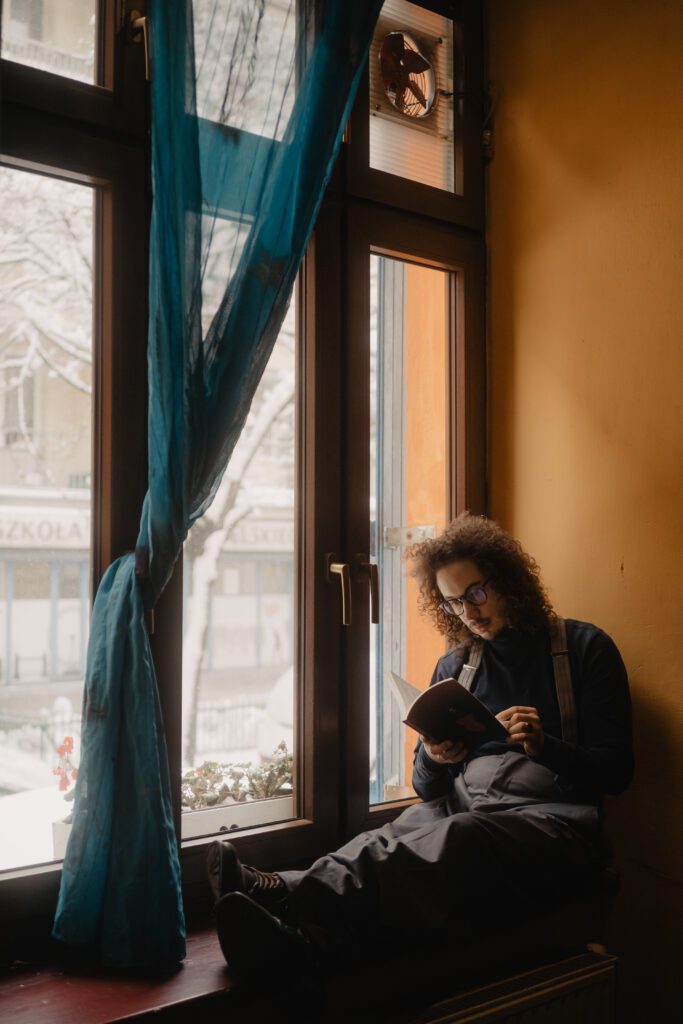 Jak sam twierdzi, jego droga pisarska zaczęła się jakieś dwadzieścia lat temu, chociaż sam ma niewiele ponad trzydzieści. Kamil Exner to twórca mocno związany z Krakowem. Kraków widać na kartach jego powieści, więc również Kraków jest tłem dla naszej sesji zdjęciowej. Ściślej – jedna z kawiarni, na stałe wpisana w krajobraz miasta.